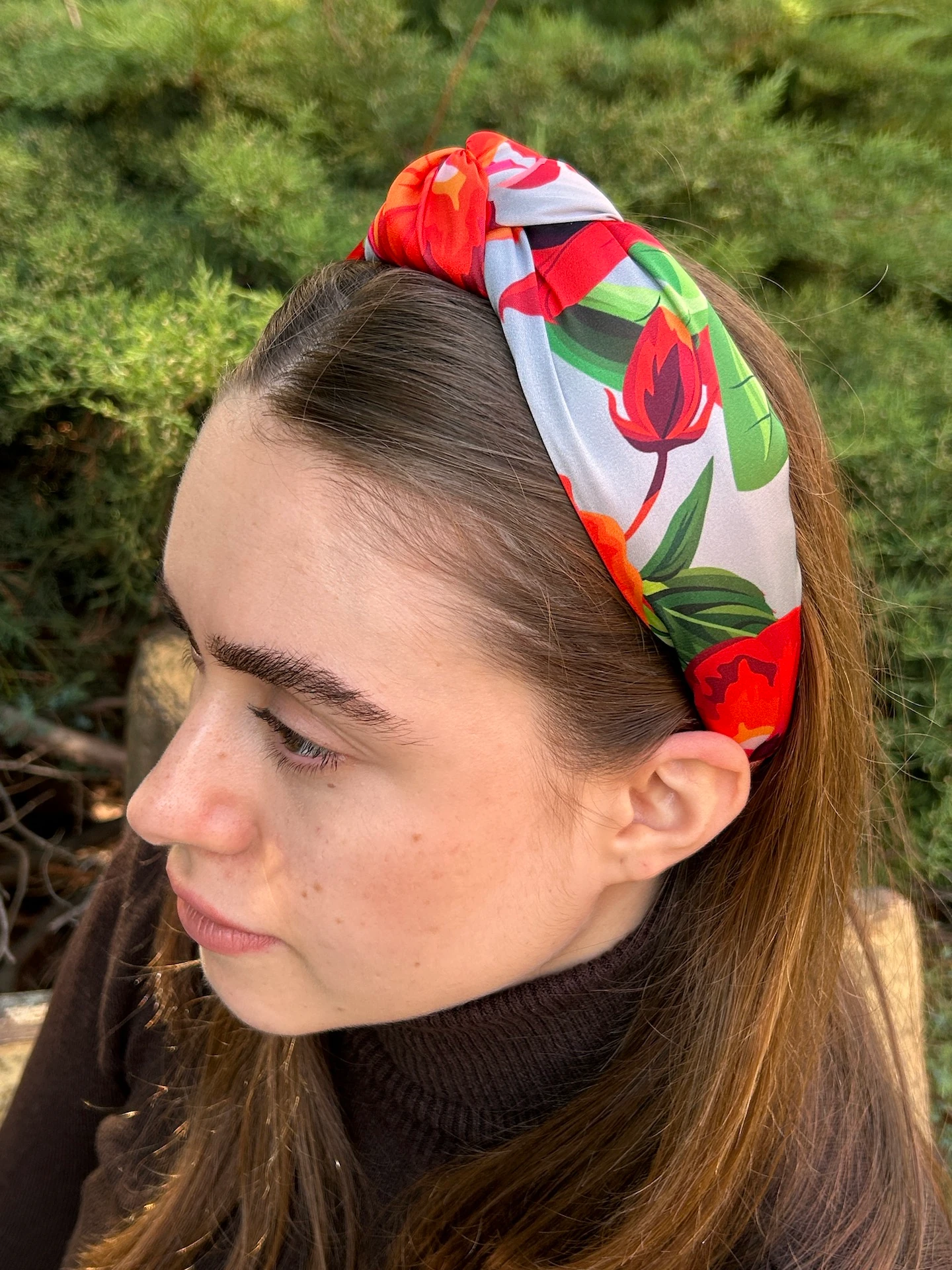 Bu karışık çiçek motifli saç tacı ile saçlarınıza anında yazın enerjisini ve etnik zarafeti katabilirsiniz. Satenin ipeksi dokusu ve el yapımı çiçek desenleri, sizi her ortamda fark edilir kılacaktır. İster salaş bir plaj kombiniyle, ister bohem bir elbiseyle; bu etnik düğüm saç bandı her stile kolayca adapte olur.