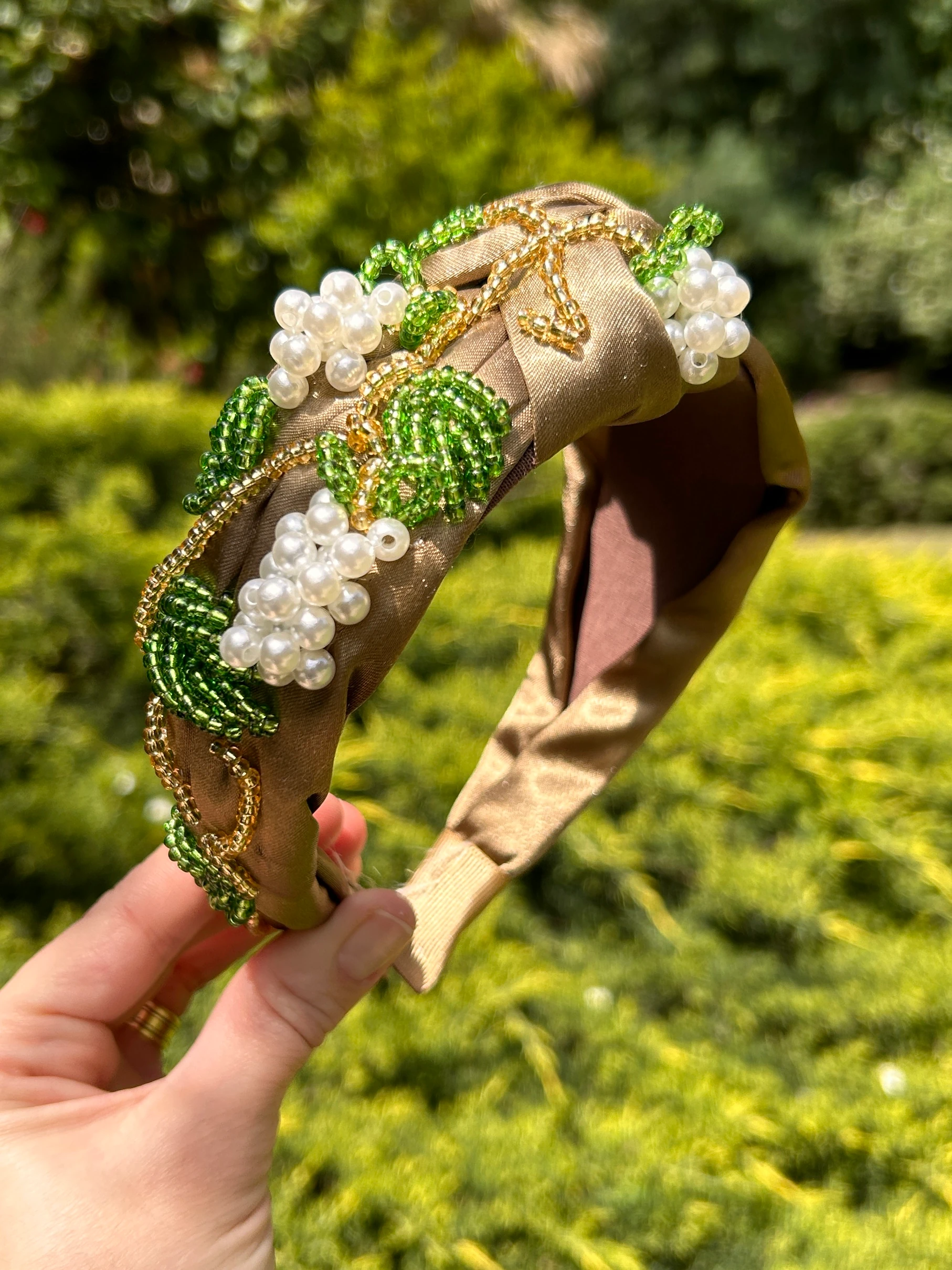 Tacın zemininde kullanılan parlak beyaz saten kumaş, tüm renkleri ön plana çıkarır. Bu doku yalnızca görsel değil, aynı zamanda konfor açısından da büyük bir avantaj sağlar. Başınızı sıkmaz, ağır hissettirmez ve gün boyu şıklığınızı korumanıza olanak tanır.