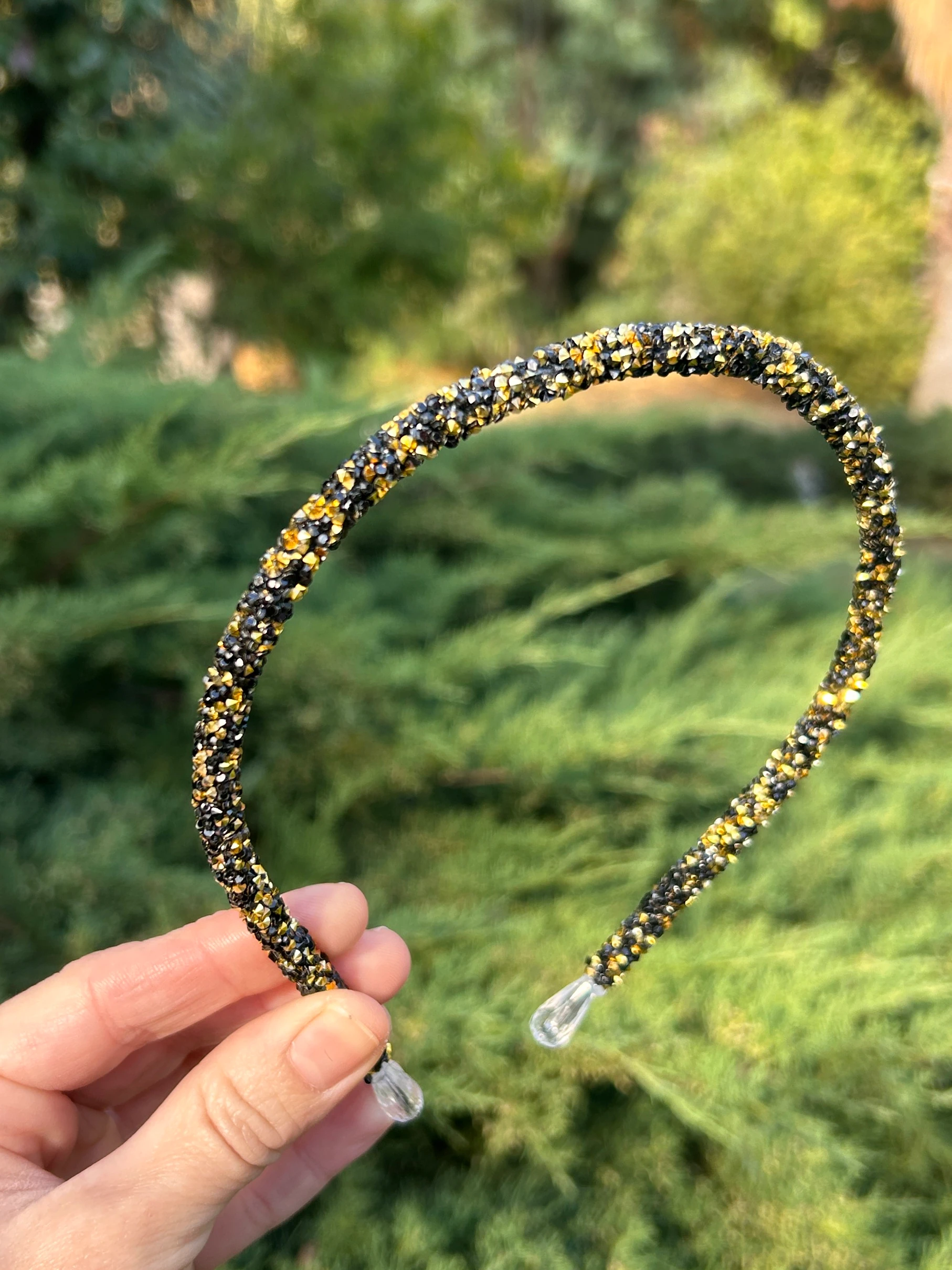 Yılbaşı gecesinde ya da özel davetlerde parlamak isteyenler için tasarlandı! Siyah ve gold tonlarının klasik ama göz alıcı uyumuyla hazırlanan bu ince saç tacı, vintage şıklığı ve modern konforu bir araya getiriyor.
