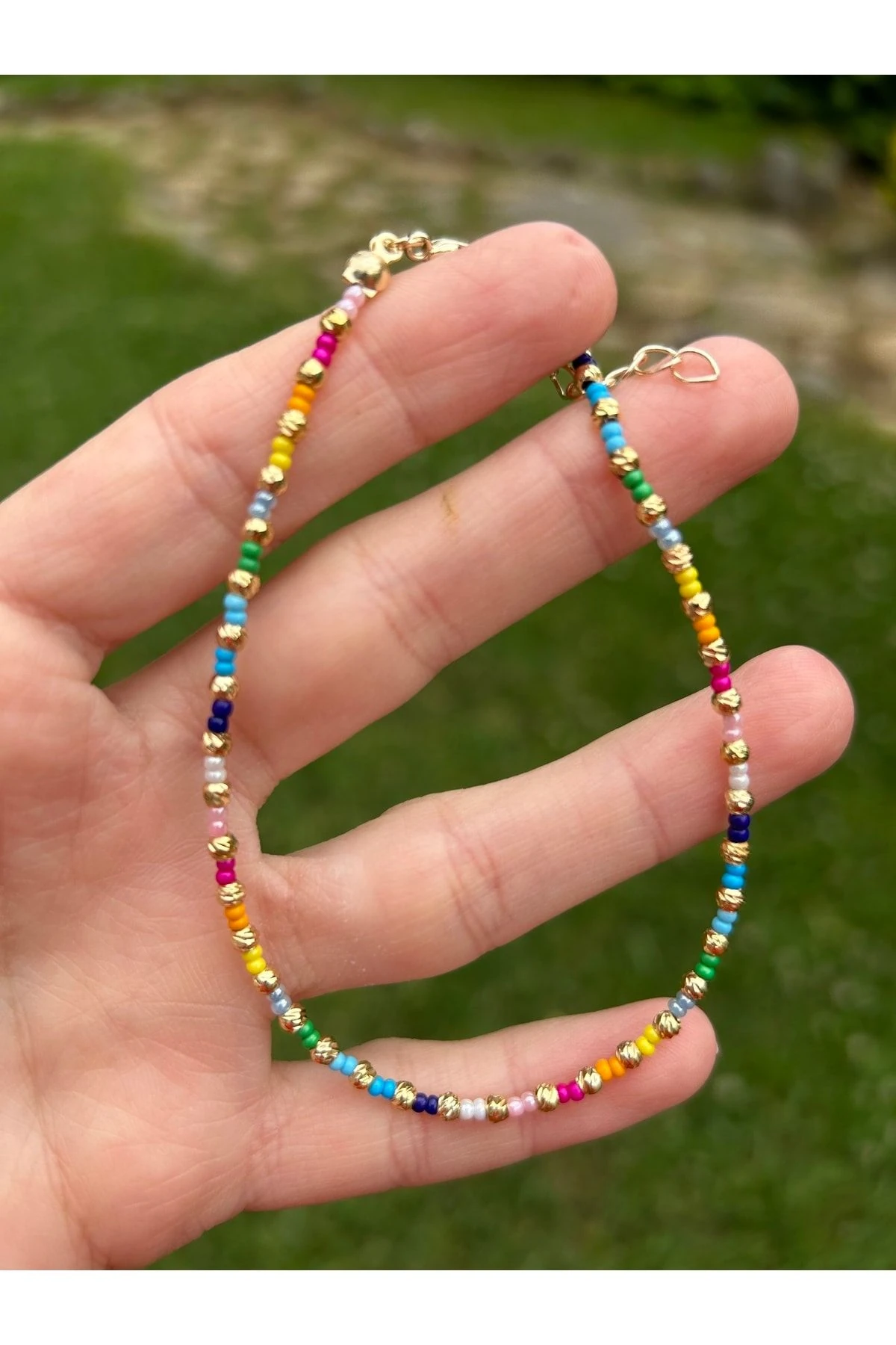 Tarzınıza enerjik bir dokunuş katmak istiyorsanız, BYM397 Dorika renkli boncuk halhal tam size göre! Altın zincir üzerine dizilmiş farklı renklerdeki parlak dorika boncuklar, her adımda ışıldayan zarif bir görünüm sunar. Yaz aylarında açık ayakkabılarla ya da yalın ayakla kullanıldığında stilinizi anında canlandırır.