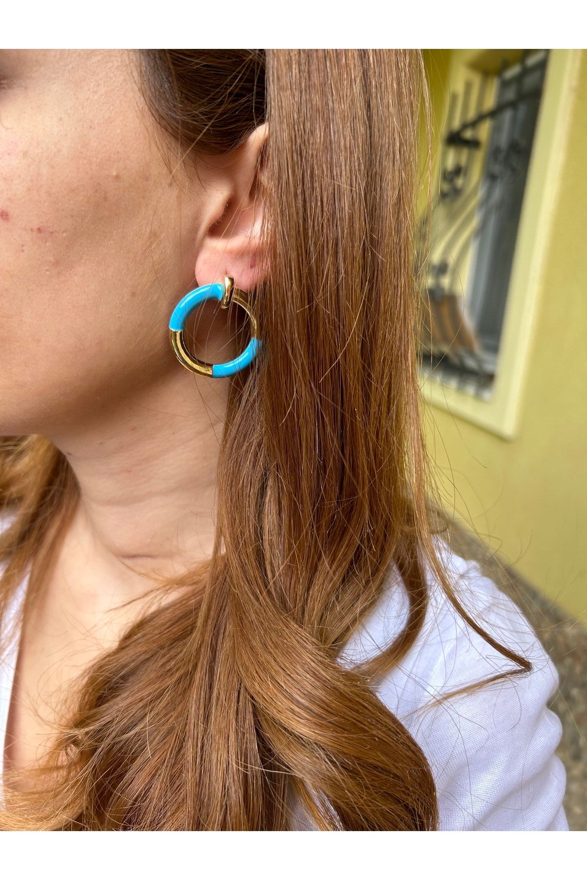 Modern tasarımı ve özel renk geçişiyle BYM433 yuvarlak halka küpe, stilinize sofistike ve enerjik bir dokunuş katmak için tasarlandı. Gold ve mavi detayların birleşimiyle göz alıcı bir ışıltıya sahip olan bu özel seri küpe, her kombininizi tamamlayacak.
