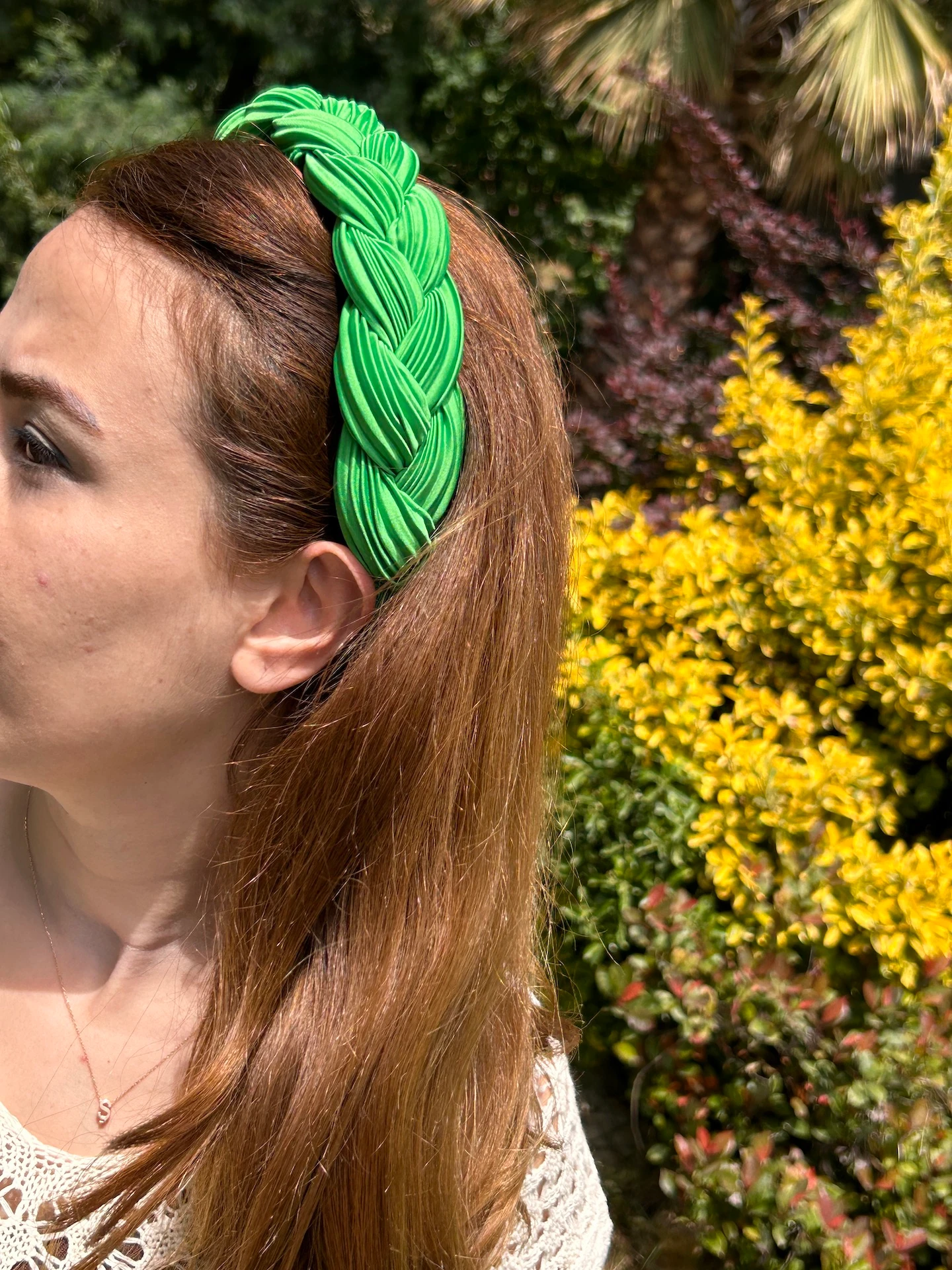 Doğallıkla şıklığın buluştuğu bu saç tacı, pilise kumaşın hafifliği ve örgü modelin zarafetiyle günlük kombinlerinize sofistike bir dokunuş katıyor. Koyu yeşil rengiyle doğanın huzurunu saçlarınıza taşıyın.